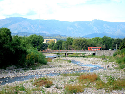 "It's not an attractive place, nothing to see, Polly", Maxi had said in Jesus Maria and I suppose he was right. It's a tiny city - not even a large town really with a handful of crowded central streets and one lovely square. I never worked out why the streets were always so crowded - what for? where was everyone going? - or what anyone was doing in Jujuy. The bus station, a short walk from the town centre and its chaotic sprawl, the little kiosks selling hot dogs and fizzy drinks, the stalls flogging knock-off dvds and all kinds of plastic crap was as exciting as it got in the city. But I liked its nostalgic neon-lit signs and its dusty stores, the roads bleeding out into the countryside, green hills rising and the river running through. No-one bothered me, no-one seemed startled or surprised by my presence. I was left alone and there were few distractions.