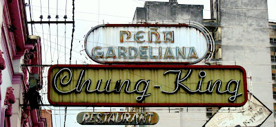 I went to a large blue restaurant which I’d passed one late afternoon and peeked inside. It was a vast empty barn, the tv in the corner talking to itself and shifting strips of sunlight the only signs of life. Behind the counter which ran along the length of the bright pink room were old wooden cabinets and a huge silver urn with gleaming taps and spout. When I came back at lunchtime the place was packed, with customers hanging round its edges, waiting for a table. The family who owned it were identical looking, chubby with round faces and black hair and they ranged from 10 to 80, like a circus troupe. They puffed and huffed, wiping and laying and squeezing between tables but not a trick was missed. I had a delicious lunch there, more meat - a huge steak for £3, one of the best I ate in Argentina. “Here” said the little fat boy flourishing my food and grinning from ear to ear, “it’s late but well here it is”. He knew how good it was going to taste.